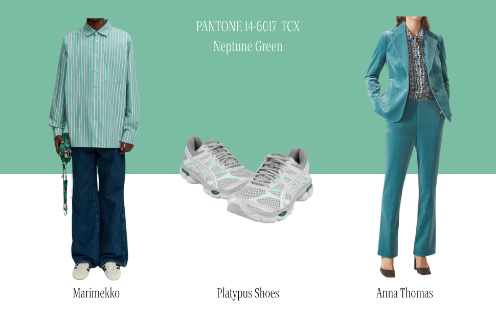 Fresh and contemporary, Neptune Green sits between mint and seafoam, bringing a cool contrast to the season’s warmer tones. It’s a shade that feels modern and effortless, offering a subtle pop of colour without overwhelming a look.